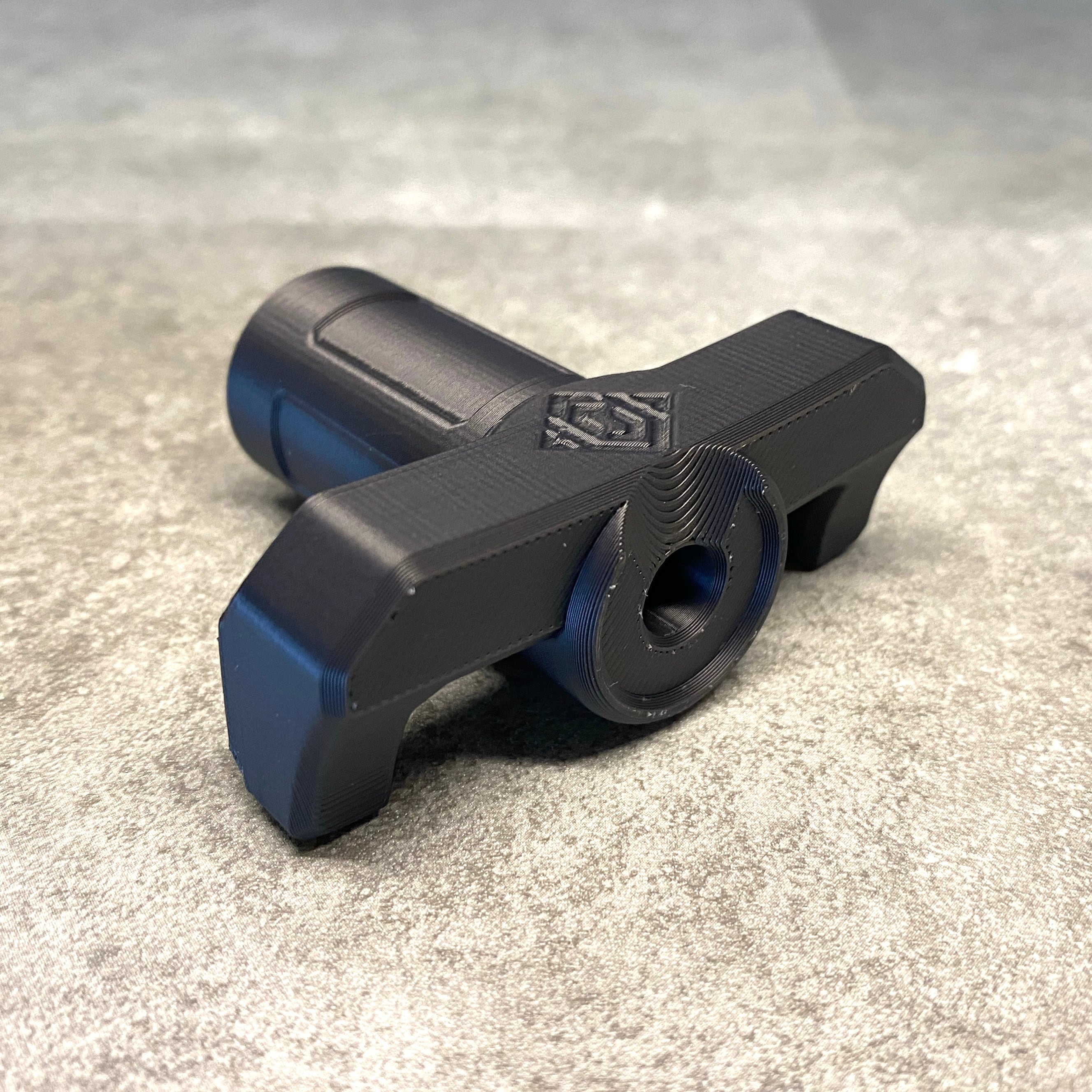 ・左右対象のL字型ハンドルにデザインしました。これにより使い慣れた純正コッキングレバーを引く感覚でコック出来ます