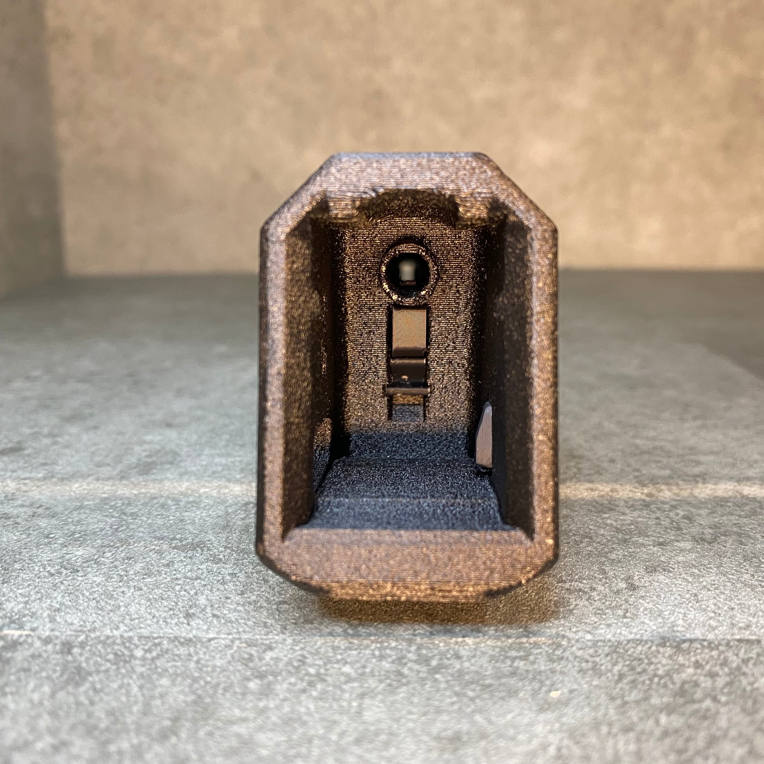 ・本商品はガタつきを抑えるためタイトな設計となっております。エアガンやマガジンの個体差によっては無加工で取り付けられない場合がございます。その場合は小加工していただくか、明らかに形が合わない場合はご連絡ください。※BOLT社のMP5マガジンは使えません。